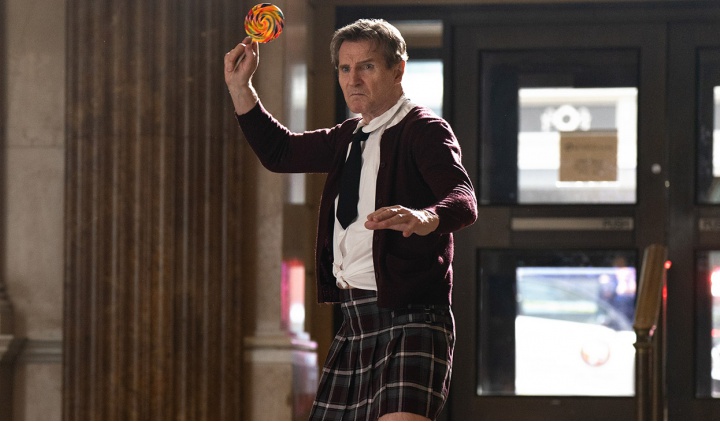 Ahogy a jeles francia filozófus Henri Bergson megfogalmazta: „Egy komikus személy általában azért komikus, mivel nem tud erről. A komikum tudattalan.” Neeson remekül igazolja ezt a megfigyelést, az pedig különösen jó ötlet volt Schafferék részéről, hogy a film vizualitása, formavilága teljes mértékben komolyan valóságos és profi. A kosztümök, díszletek és épületek, a legnépszerűbb akciófilmeket megidéző akciókoreográfiák szemlátomást nagyon is valóságos világot ábrázolnak, így a háttérhez képest még meghökkentőbb kontrasztot képez a szereplők viselkedése.